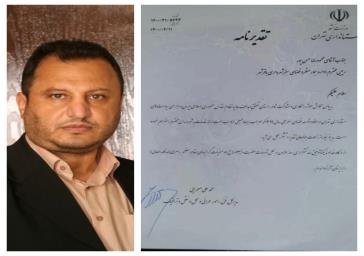 در متن نامه مدیرکل دفتر فنی، امور عمرانی و حمل و نقل و ترافیک استانداری تهران آمده است : به پاس تلاش موثر، همکاری و مشارکت در راستای تحقق اهداف عالیه نظام مقدس جمهوری اسلامی ایران و اجرای سیاستهای استانداری تهران در حفظ و توسعه فضای سبز طی سال ۱۳۹۹ که موجب ایجاد محیطی مناسب جهت ارائه خدمات به شهروندان محترم باقرشهر را فراهم نموده است ، بدینوسیله از زحمات جنابعالی تقدیر و تشکر به عمل می آید.