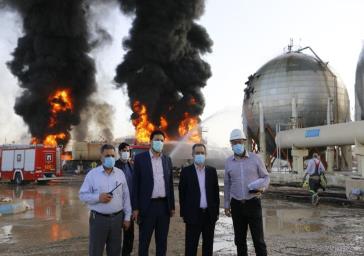 حضور استاندار تهران در محل حادثه آتش سوزی پالایشگاه تهران