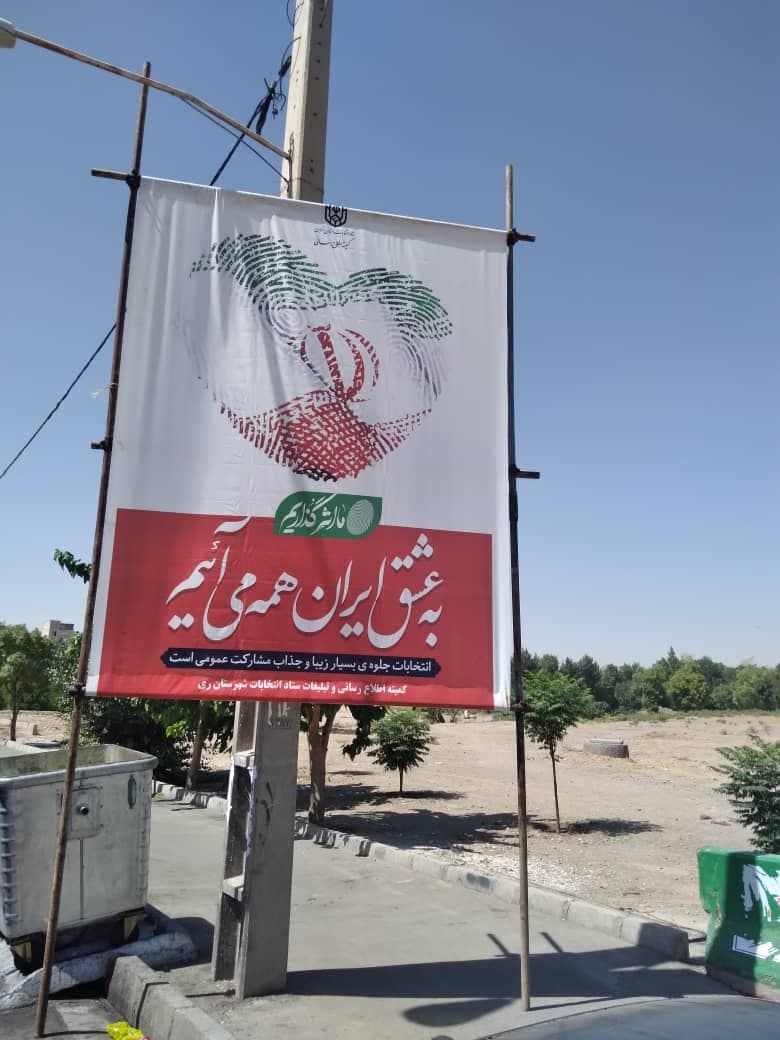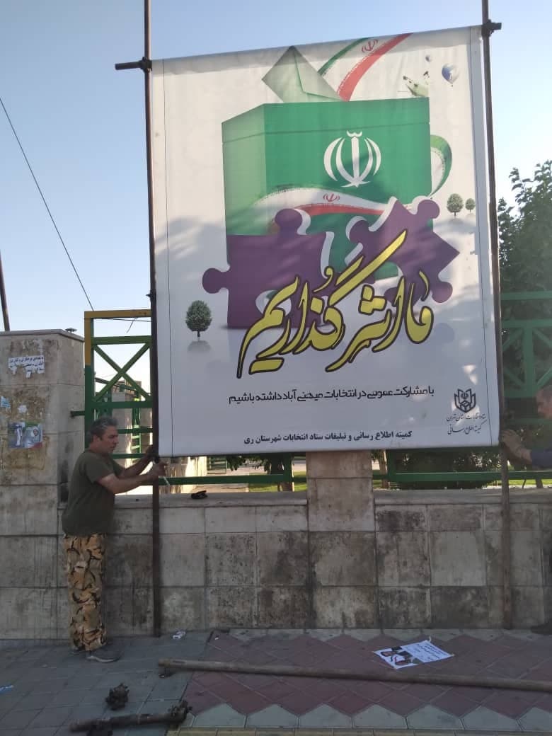 به گزارش کمیته امور اطلاع رسانی و تبلیغات ستاد انتخابات شهرستان ری، با توجه به تاکیدات مقام معظم رهبری پیرامون اهمیت انتخابات، سطح شهرستان ری با نصب بنر با موضوع مشارکت حداکثری فضا سازی شد.