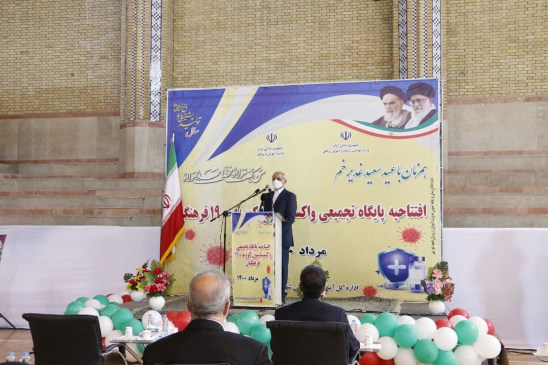 مراسم افتتاحیه پایگاه تجمیعی واکسیناسیون کویید-۱۹ فرهنگیان در شهرری با حضور وزرای بهداشت و آموزش و پرورش