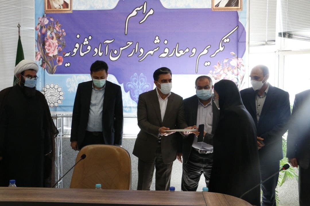 به گزارش روابط عمومی فرمانداری ویژه شهرستان ری، آئین تکریم و معارفه شهردار حسن آباد فشافویه با حضور حسین توکلی کِجانی معاون استاندار تهران و فرماندار ویژه شهرستان ری، طاهری نسب مدیرکل دفتر امور شهری و شوراهای استانداری تهران، امام جمعه و بخشدار فشافویه، رئیس حوزه قضایی بخش فشافویه، اعضای شورای اسلامی شهر حسن آباد و سایر مسئولین برگزار شد.