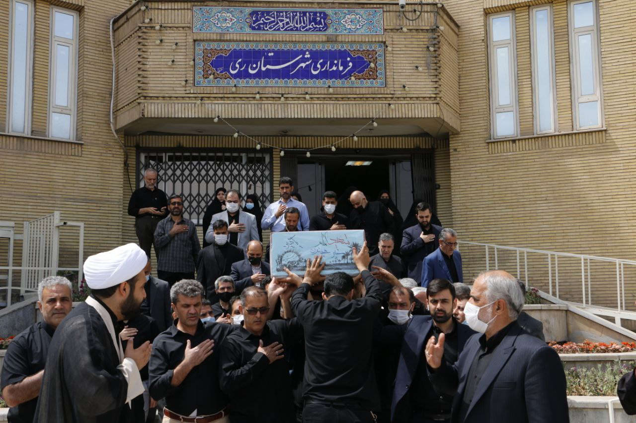 در این مراسم معنوی پس از اقامه نماز جماعت ظهر و عصر و تشییع پیکر شهید تا محل نمازخانه ساختمان فرمانداری، مراسم روضه خوانی و وداع با پیکر پاک شهید با حضور حاج حمید زمانی معاون استاندار تهران و فرماندار ویژه شهرستان ری، معاونین فرماندار، رؤسای ادارات و پرسنل فرمانداری و باحضور جمعی از مراجعین برگزار گردید.