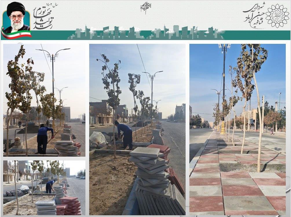 اجرای عملیات کف پوش رفیوژ میانی بلوارشهیدبهشتی درشهرحسن آباد