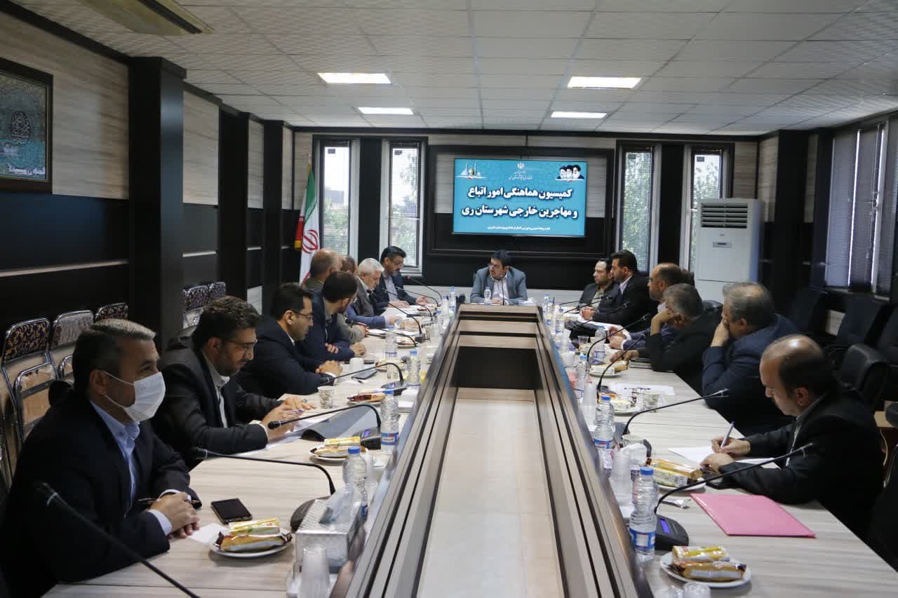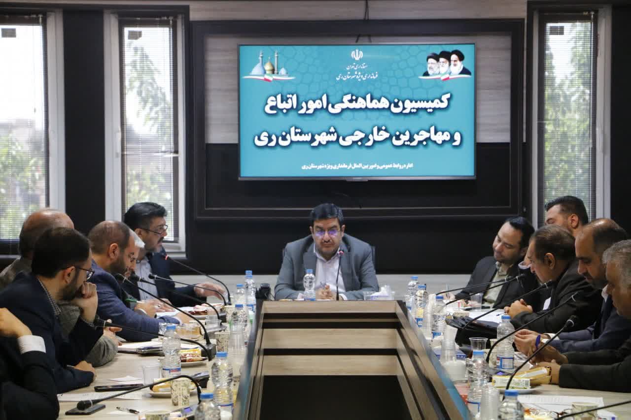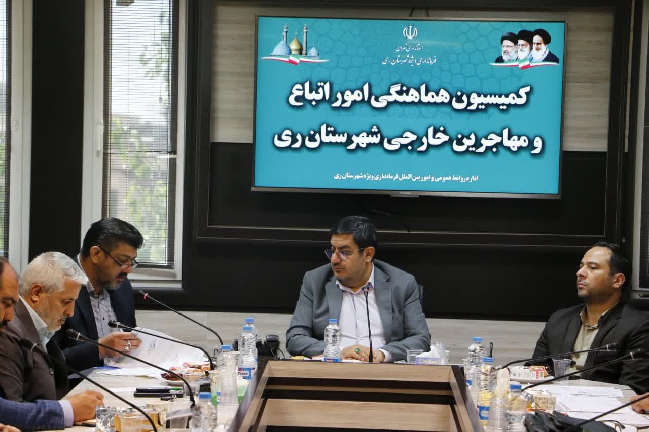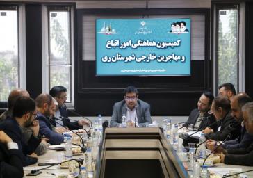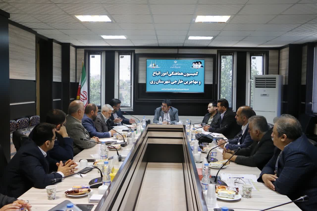 به گزارش اداره روابط عمومی فرمانداری ویژه ری، دومین نشست کمیسیون هماهنگی امور اتباع و مهاجرین خارجی شهرستان ری روز چهارشنبه ۱۹ اردیبهشت ماه به ریاست مهدی باب الحوائجی معاون استاندار تهران و فرماندار ویژه شهرستان ری در محل سالن جلسات شهدای مدافع حرم ساختمان فرمانداری برگزار شد.