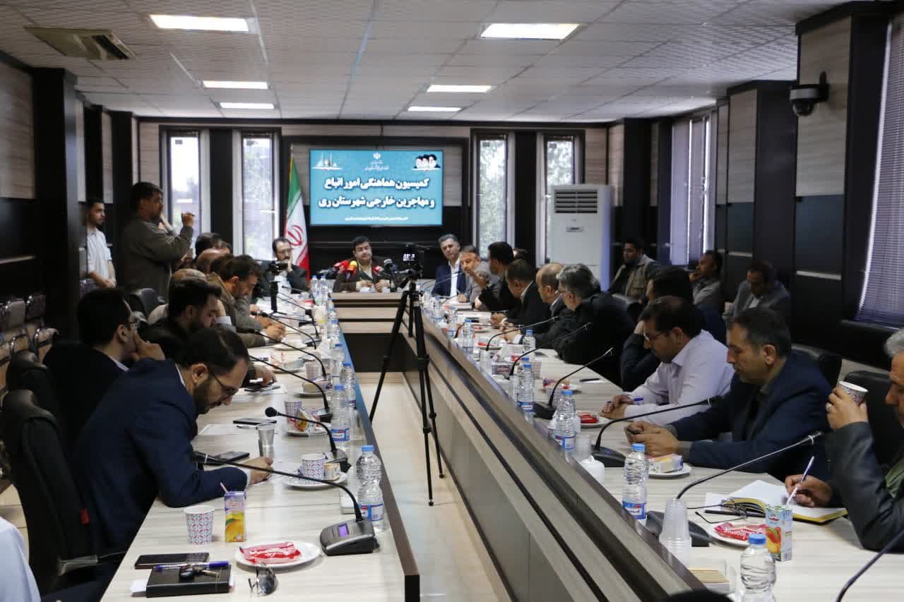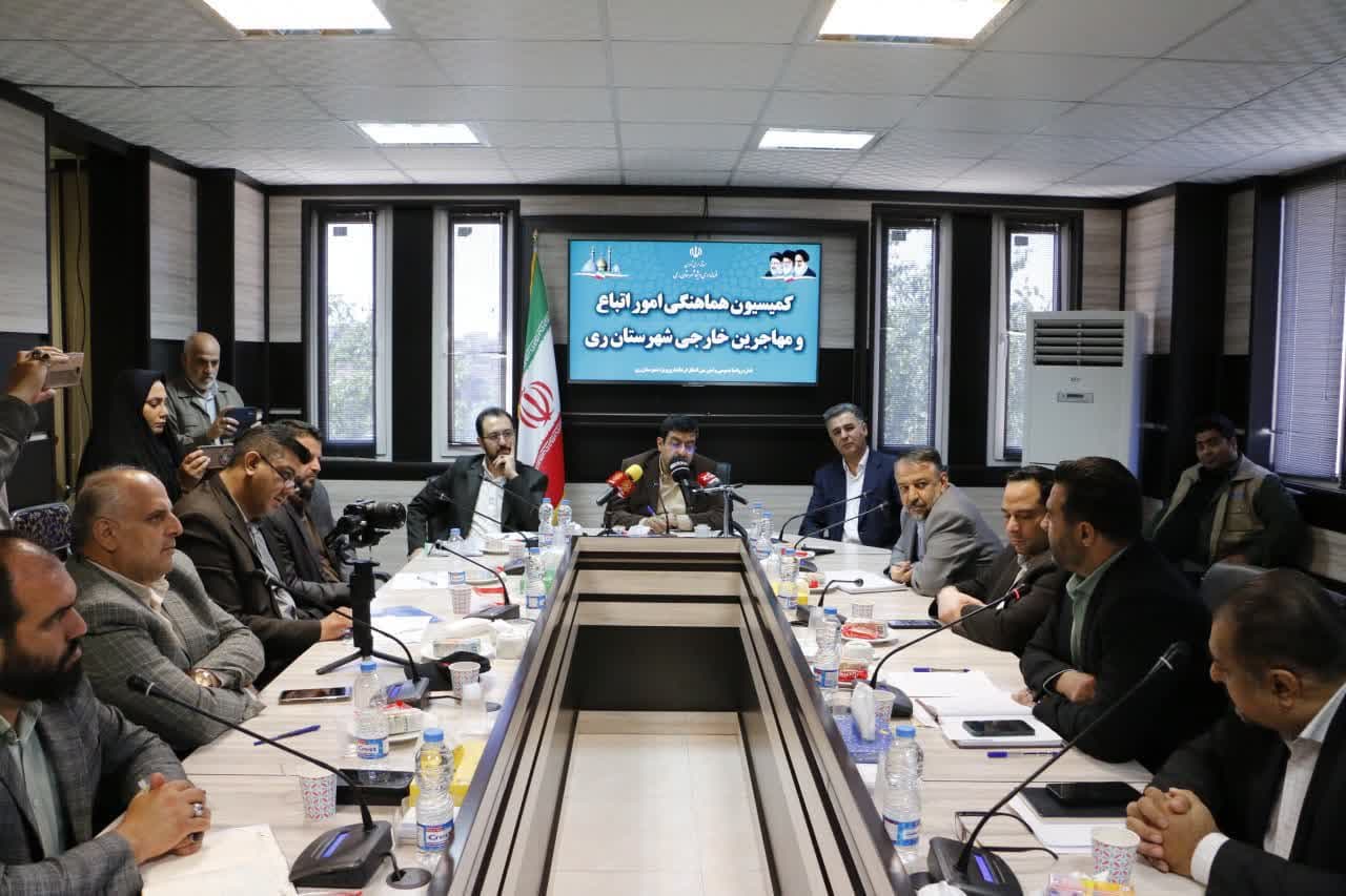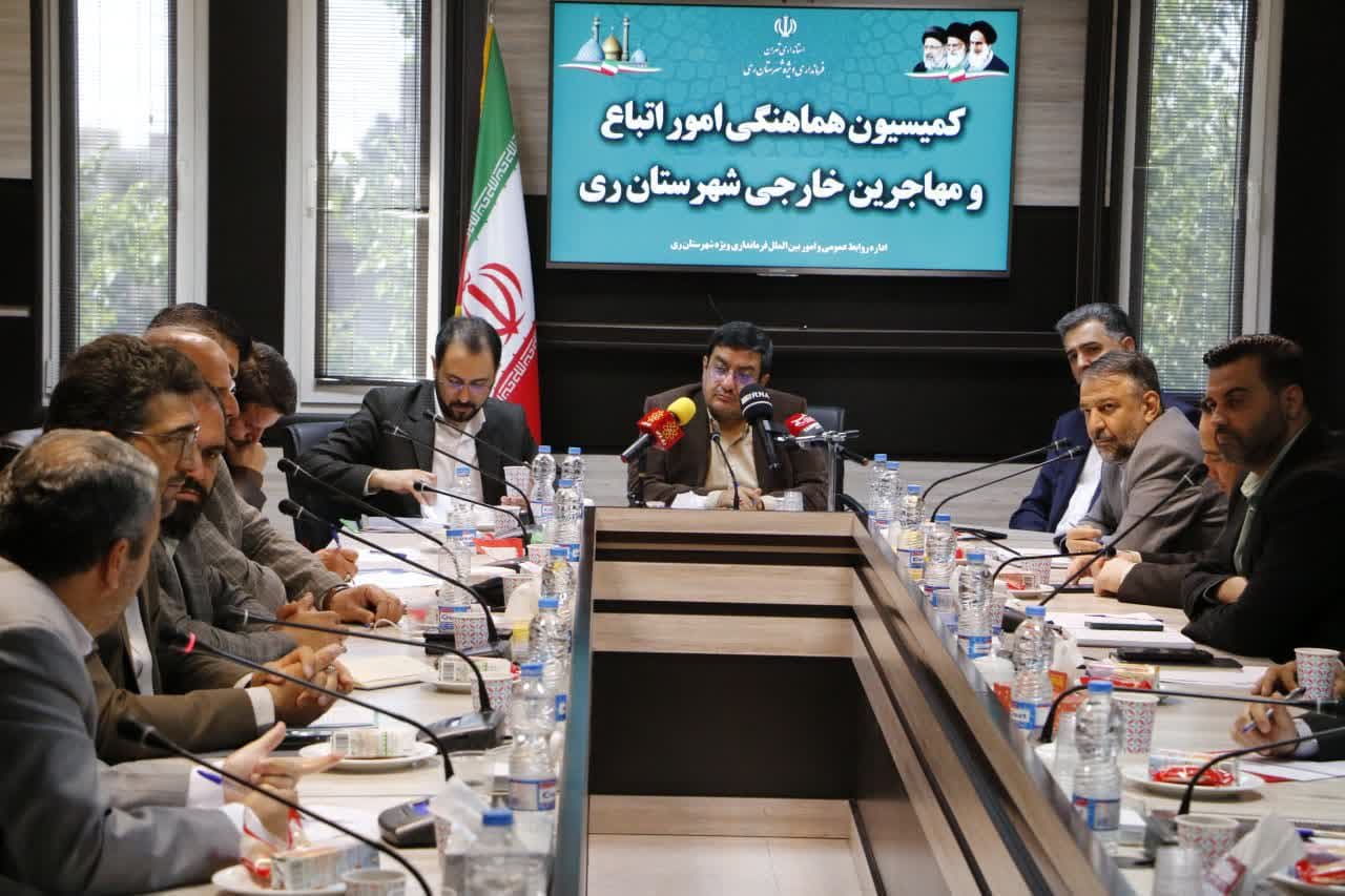 به گزارش اداره روابط عمومی فرمانداری ویژه ری، در راستای اجرای مصوبات شورای تأمین و پاسخگویی مسئولانه به درخواست ها و دغدغه های شهروندان شهرستان ری در موضوع مقابله با حضور اتباع غیرمجاز در سطح شهرها و روستاها، صبح روز یکشنبه ۳۰ اردیبهشت ماه نشست ویژه کمیسیون هماهنگی امور اتباع و مهاجرین خارجی شهرستان ری به ریاست مهدی باب الحوائجی معاون استاندار تهران و فرماندار ویژه شهرستان ری برگزار شد.