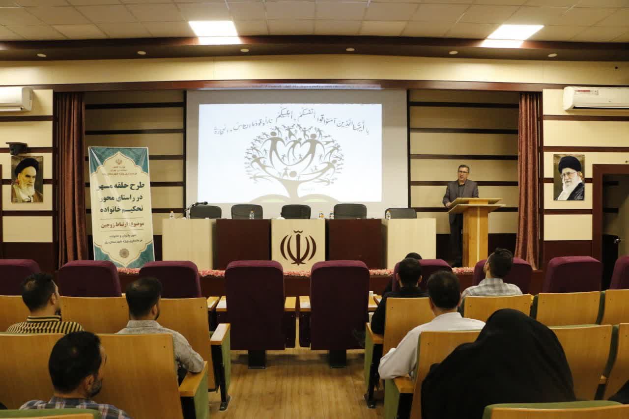 در راستای رفع مشکلات و ضرورت مهارت آموزی افراد در موضوعات مرتبط با حوزه خانواده، نشست آموزشی طرح حلقه مهر در راستای محور تحکیم خانواده با موضوع ارتباط زوجین ویژه کارکنان فرمانداری و بخشداری های تابعه به همت امور بانوان و خانواده فرمانداری ویژه شهرستان ری برگزار شد.