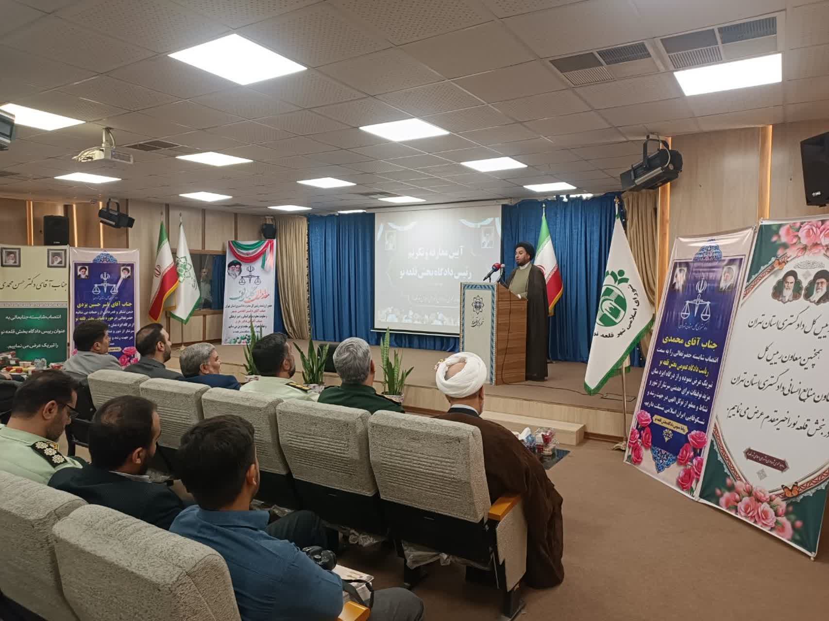 به گزارش اداره روابط عمومی فرمانداری ویژه ری، آئین تکریم و معارفه رئیس حوزه قضائی بخش قلعه نو باحضور بیژن سلیمان پور معاون استاندار تهران و فرماندار ویژه شهرستان ری، القاصی مهر رئیس کل دادگستری استان تهران و سایر مسئولین در سالن اجتماعات شهرداری قلعه نو برگزار شد.