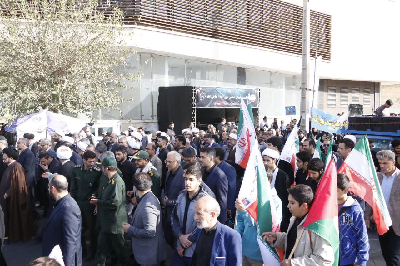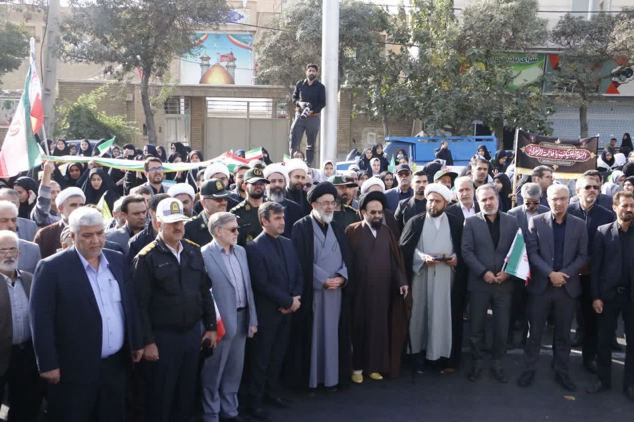 در این آیین انقلابی که باحضور حجت الاسلام والمسلین شاهچراغی امام جمعه شهرری، سلیمان پور معاون استاندار تهران و فرماندار ویژه شهرستان ری، یزدیخواه رئیس مجمع نمایندگان استان تهران، اعضای شورای تأمین، فرماندهان نظامی و انتظامی، مسئولین و رؤسای دستگاه های شهرستان ری برگزار شد، حاضرین با سر دادن شعارهای ضد استکباری، برائت خود را از آمریکای جنایتکار، رژیم جعلی صهیونی و ایادی استکبار جهانی اعلام نمودند.