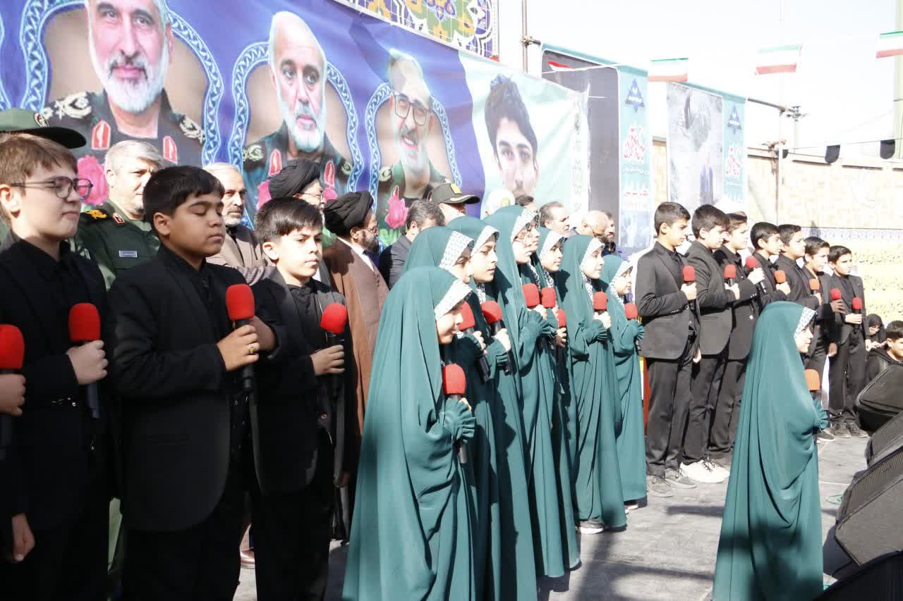 در پایان این مراسم علاوه بر قرائت قطعنامه توسط یکی از دانش آموزان، باحضور مسئولین از فرزندان شهدای اقتدار و جنگ ۱۲ روزه با رژیم کودک کش اسرائیل تجلیل بعمل آمد.