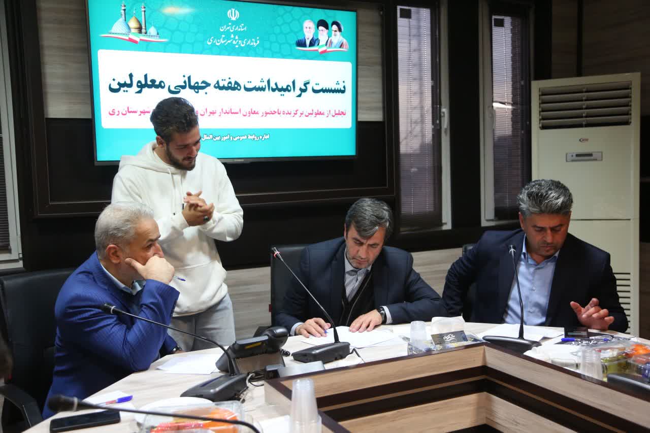 همزمان با هفته جهانی معلولین، عصر امروز نشست بزرگداشت این هفته و تجلیل از نخبگان و قهرمانان رشته های مختلف علمی، فرهنگی، مذهبی، ورزشی، هنری و اشتغال و کارآفرینی باحضور معاون استاندار تهران و فرماندار ویژه شهرستان ری برگزار شد.