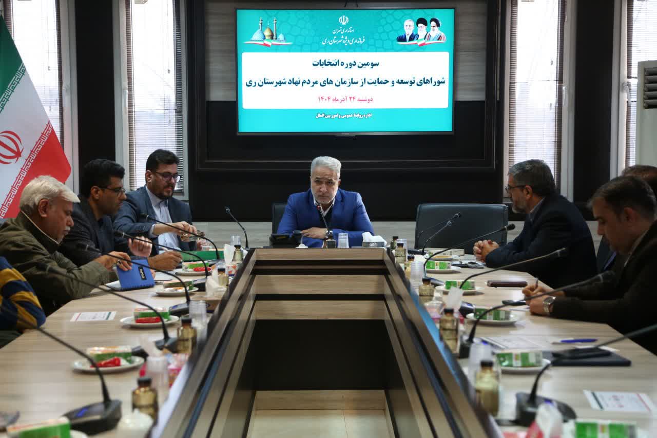 به گزارش اداره روابط عمومی فرمانداری ویژه ری، در راستای اجرای آیین نامه مصوب هیئت وزیران و سیاست‌های کلی نظام در حوزه مشارکت اجتماعی و تقویت جایگاه قانونی جامعه مدنی، فرآیند انتخاب نماینده سازمان‌های مردم‌نهاد در شورای توسعه و حمایت از سمن‌های شهرستان ری روز دوشنبه ۲۴ آذرماه همزمان با سراسر کشور به ریاست حمیدرضا ذوالفقاری معاون سیاسی، امنیتی و اجتماعی فرمانداری ویژه شهرستان ری برگزار شد.