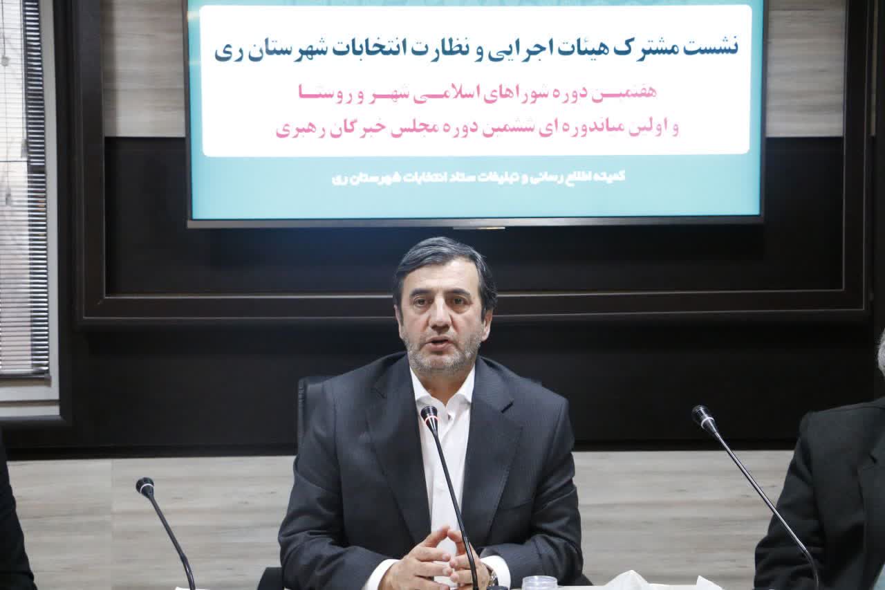 فرماندار ویژه شهرستان ری با تأکید بر نقش محوری هیأتهای اجرایی و نظارت در برگزاری انتخابات، گفت: رعایت دقیق قانون، بیطرفی کامل و صیانت از آرای مردم، خط قرمز نظام و مهمترین وظیفه دستاندرکاران انتخابات است.