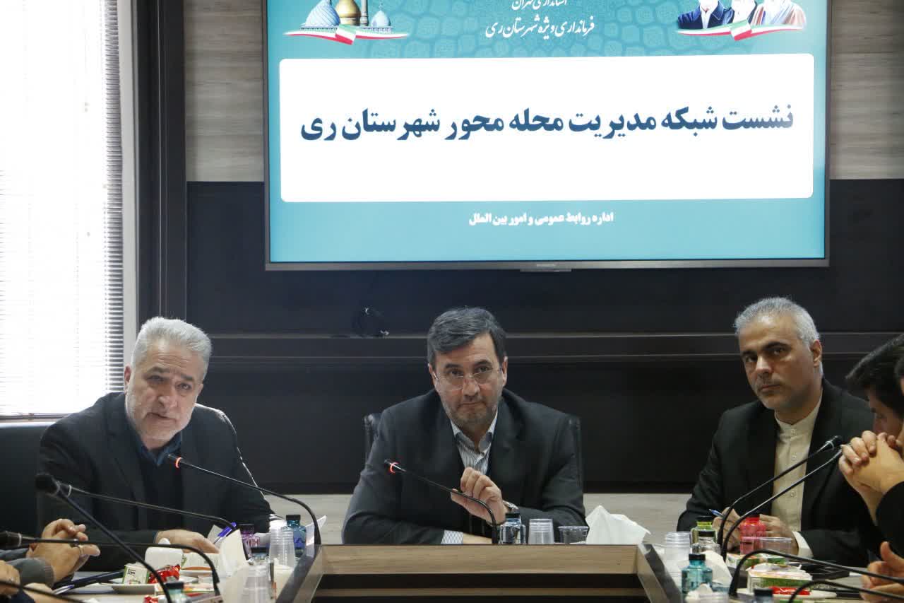 به گزارش اداره روابط عمومی فرمانداری ویژه شهرستان ری، در راستای رفع مشکلات و معضلات اجتماعی و بررسی اجرای طرح های مؤثر در حوزه فرهنگ عمومی و مسائل اجتماعی، نشست شبکه مدیریت محلهمحور شهرستان ری به ریاست بیژن سلیمان پور معاون استاندار تهران و فرماندار ویژه شهرستان ری و باحضور اعضاء در محل سالن جلسات شهدای مدافع حرم ساختمان فرمانداری برگزار شد.